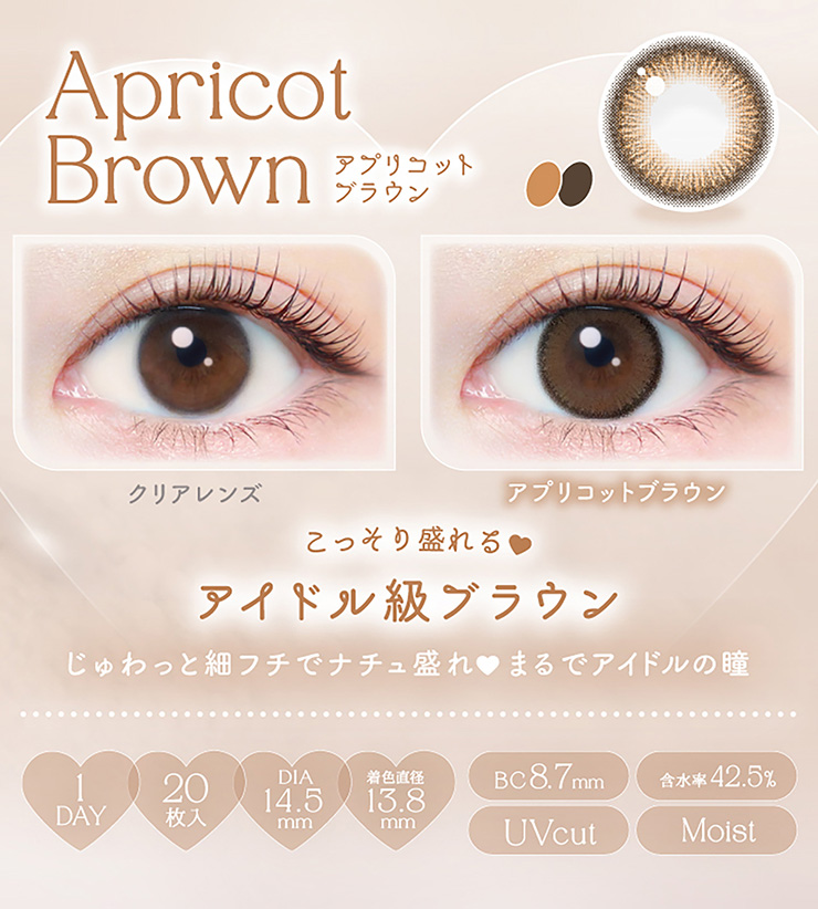オレンジブラウンの繊細なデザインが瞳全体をトーンアップし、さりげなくキュートな印象に。