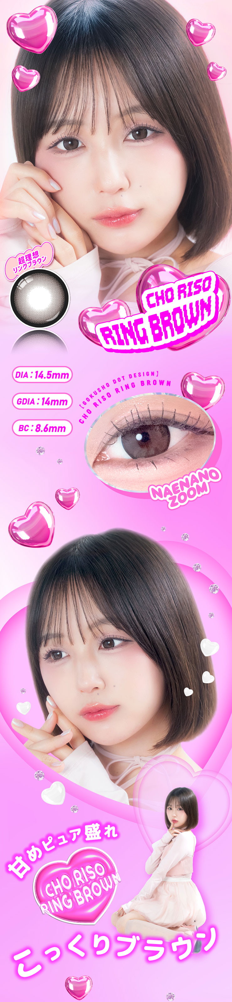着色直径13.6mmのガーリーに盛れるナチュラルブラウン。